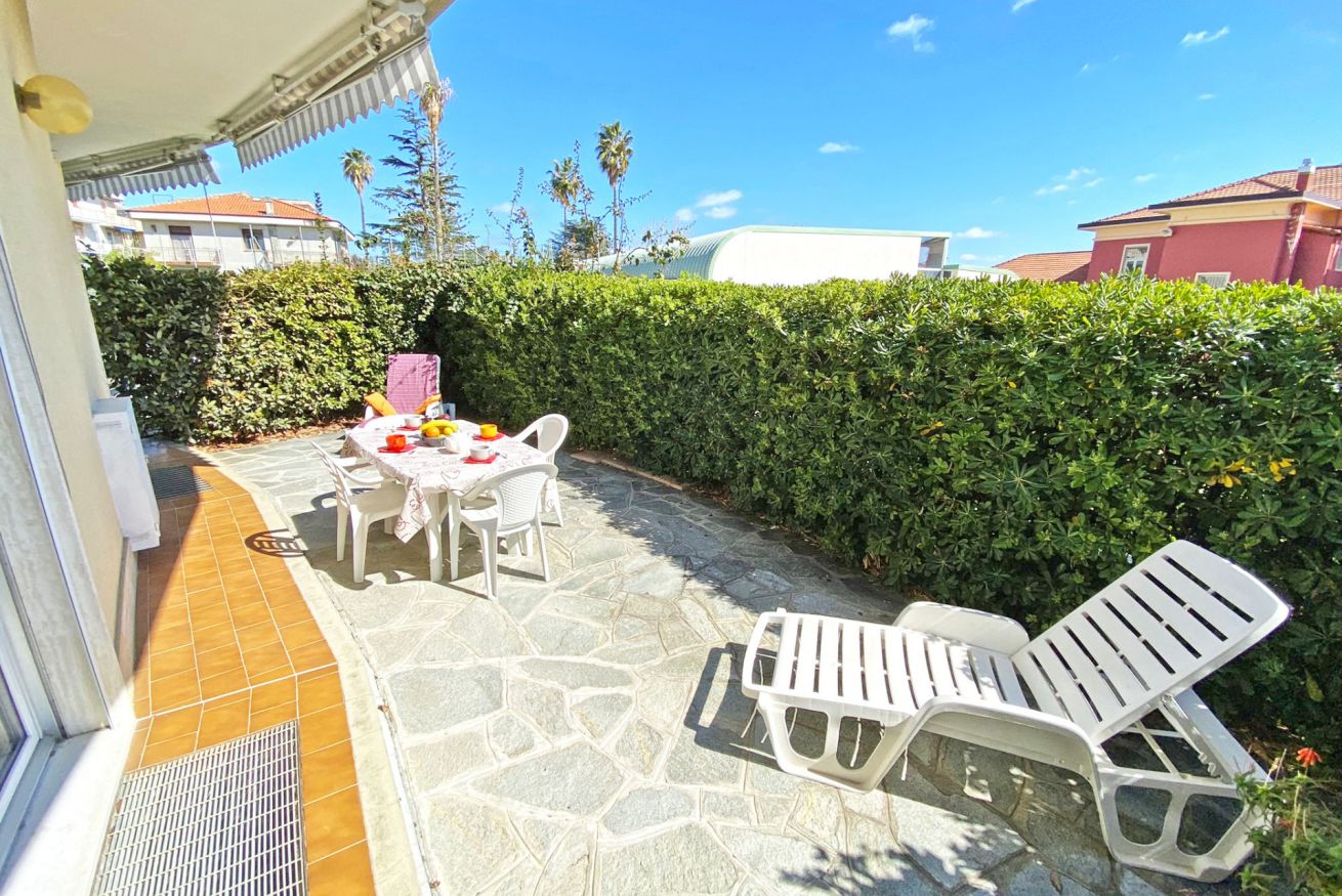 APPARTAMENTO spazioso con GIARDINO attrezzato e POSTO AUTO a 50 metri dal MARE e a 7 KM da SANREMO