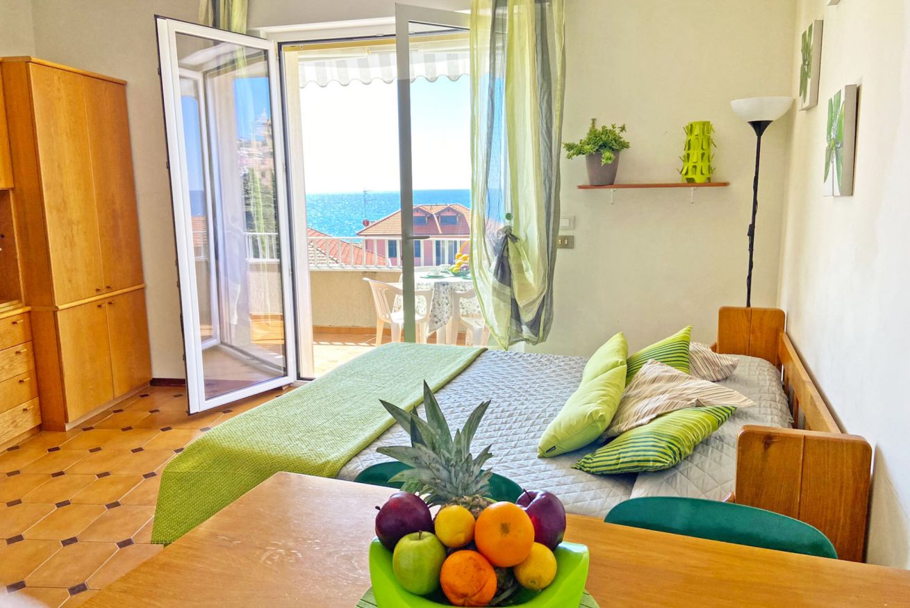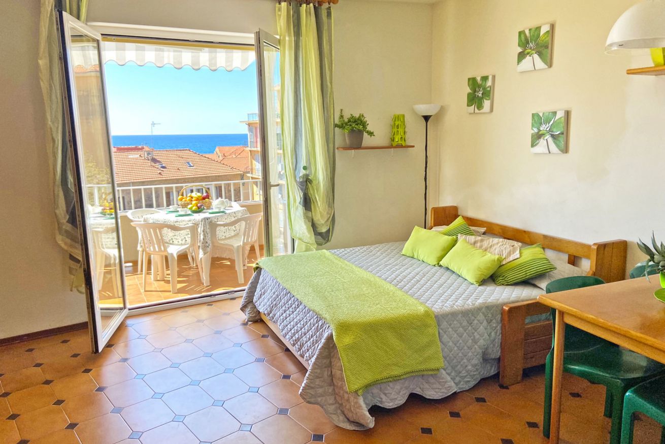 Luminoso MONOLOCALE con BALCONE VISTA MARE e POSTO AUTO vicino al MARE a 7 Km da SANREMO