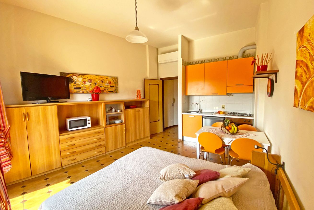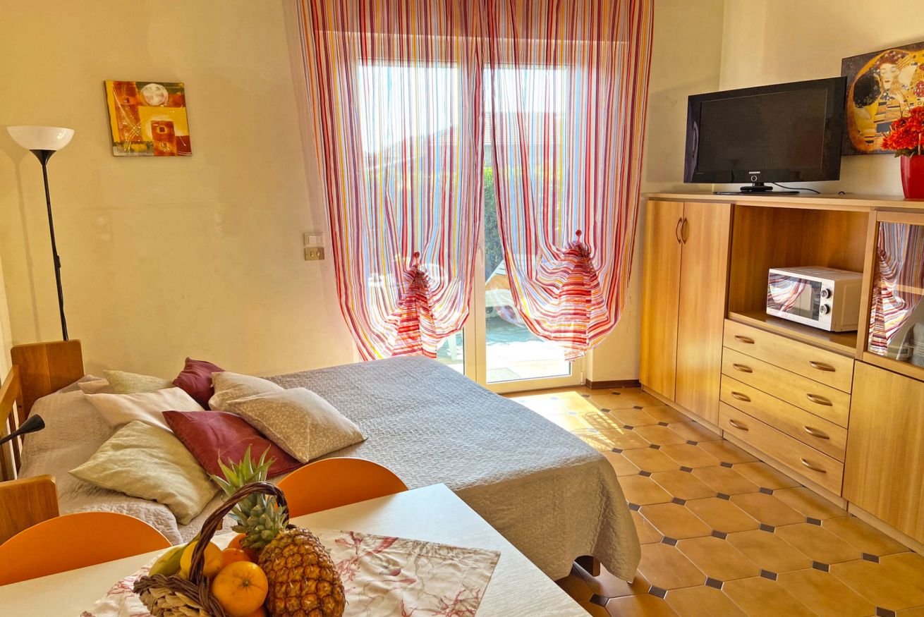 Questo delizioso monolocale rappresenta la soluzione ideale per una vacanza all’insegna della svago e della tranquillità a partire proprio dal suo arredamento che rispecchia i colori del mare e del tramonto. Particolarmente adatto per amanti degli spazi verdi, grazie all’accogliente giardino che rappresenta la vera chicca della struttura. È infatti possibile trascorrere momenti di puro relax in questo apposito spazio esclusivo per un aperitivo, una cena o anche solo per fare un breve riposo dopo un'intensa giornata di mare. L’esclusivo posto per parcheggiare l'automobile e le biciclette rende la struttura perfetta per chi desidera visitare le immense bellezze della riviera ligure, come la fascinosa città di Sanremo con il suo Outlet di lusso, oltre che il Principato di Monaco e la Costa azzurra. La cucina completamente attrezzata, il locale lavanderia, il letto singolo a scomparsa, il wifi e l’aria condizionata completano i servizi di comfort per una vacanza rigenerante.
